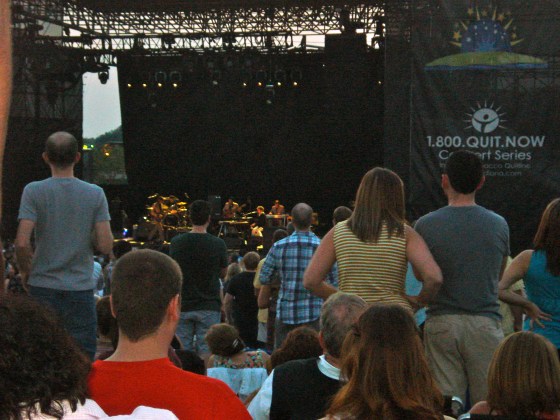 It was a beautiful summer evening and the concert was held in an outdoor venue, so we got to enjoy the sunset just as Bob Dylan was beginning to play. I loved the casual, picnic atmosphere. There were no assigned seats {at least not in the back section where we were sitting!} Instead, people sat in blankets or lawn chairs in the grass. It was lovely.