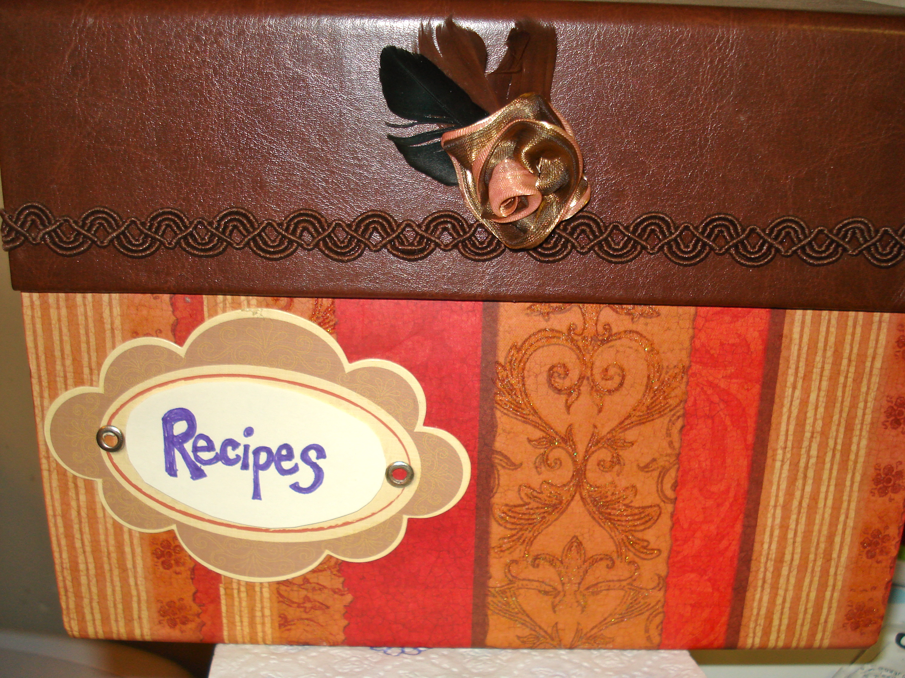 what a cute box! i have a large crate with big binders in it. i have SO many recipes. the recipes are in plastic page covers… i have more than i can use in my lifetime! haha